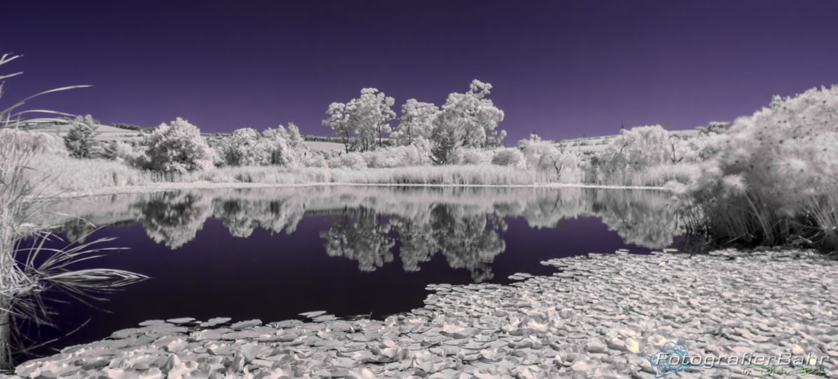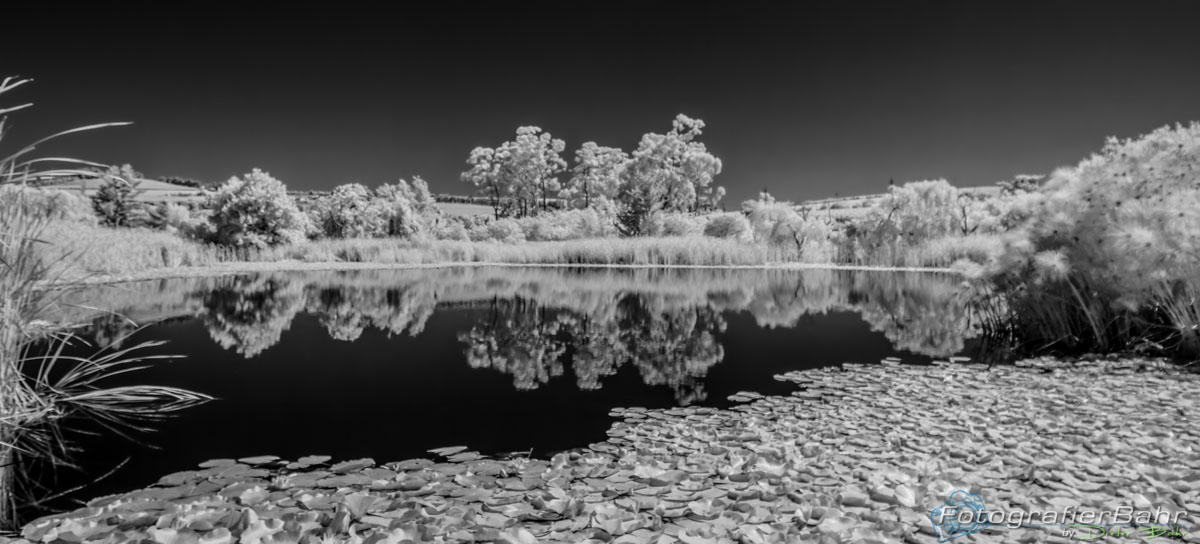 Infrarotbilder sehen faszinierend aus und können bei fast jeder Landschaft ein tolles Fotoergebnis bringen. Ein tolles Ergebnis erreicht man meist mit viel "Grün", Wasser für eine schöne Spiegelung und am besten noch schöne Schäfchenwolken am Himmel.