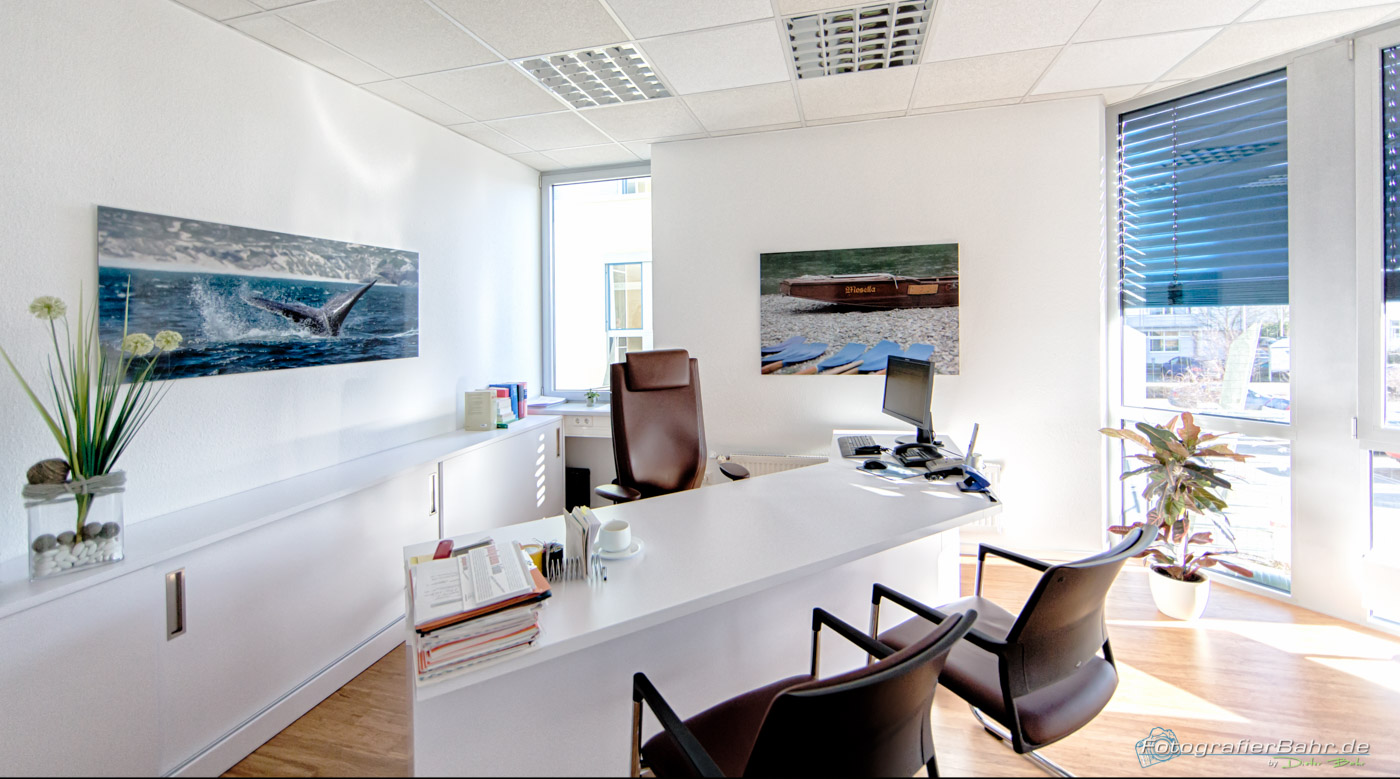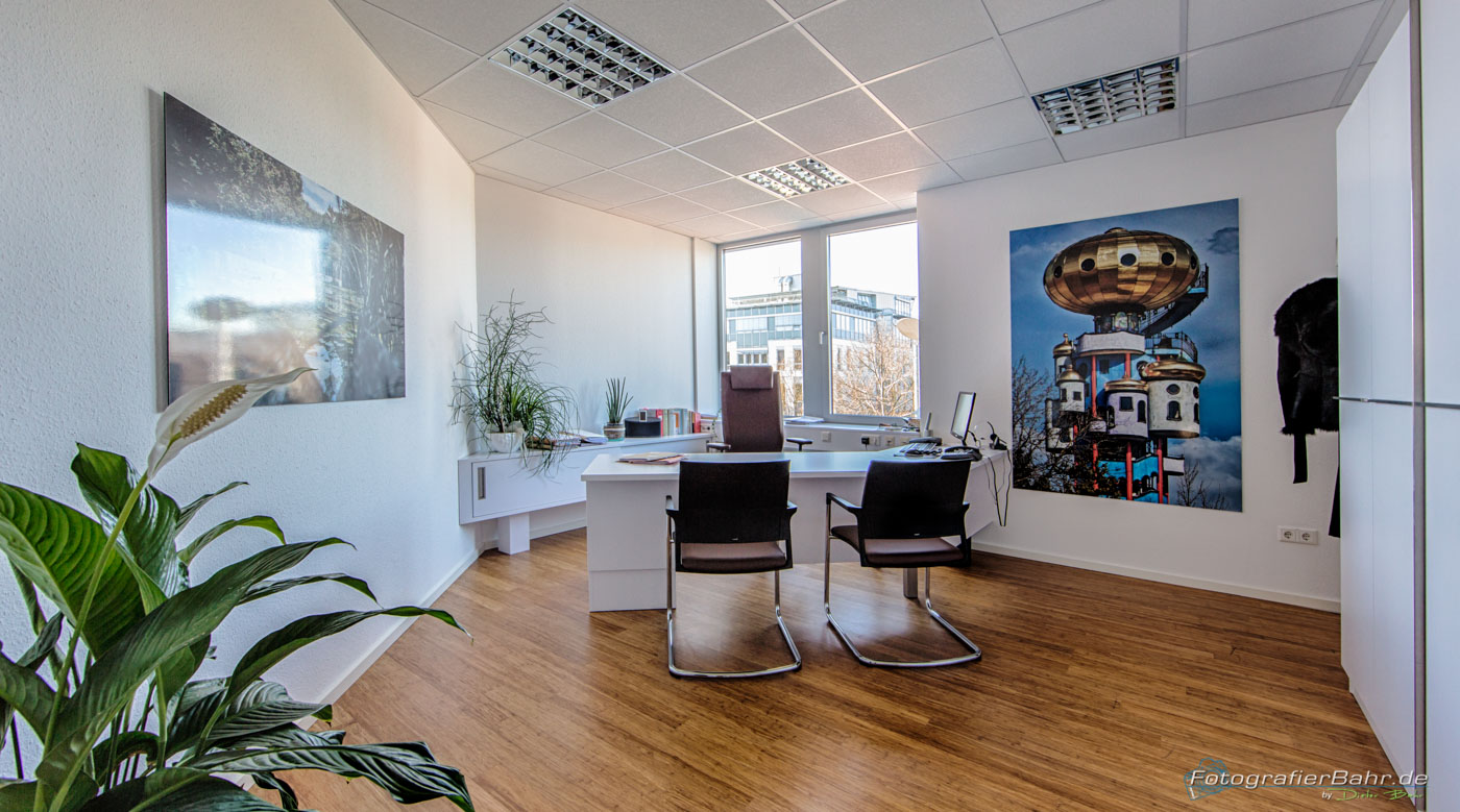in Kooperation mit einer Innenarchitektin wurde eine farbliche und dekorative Umgestaltung der Kanzleiräume durchgeführt. Die Büroräume, der Eingangsbereich und der Warteraum wurden mit Bildern ausgestattet, welche sich farblich in das Gesamtkonzept fügen. Die im Eingangsbereich und Flur gezeigten Bilder hängen dort im Rahmen einer Dauerausstellung. Hier haben Mandanten die Gelegenheit, bei Interesse Bilder käuflich zu erwerben!