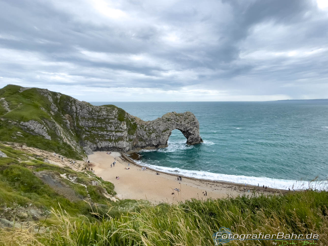 Also weiter zur Durdle Door. Auf dem Parkplatz ist Übernachten verboten, aber der Campingplatz hat Stellplätze direkt daneben. Cool, aber leider nur für Fahrzeuge bis fünfeinhalb Meter. Schaaaaade. Also kein Meerblick vom Wohnmobil aus.