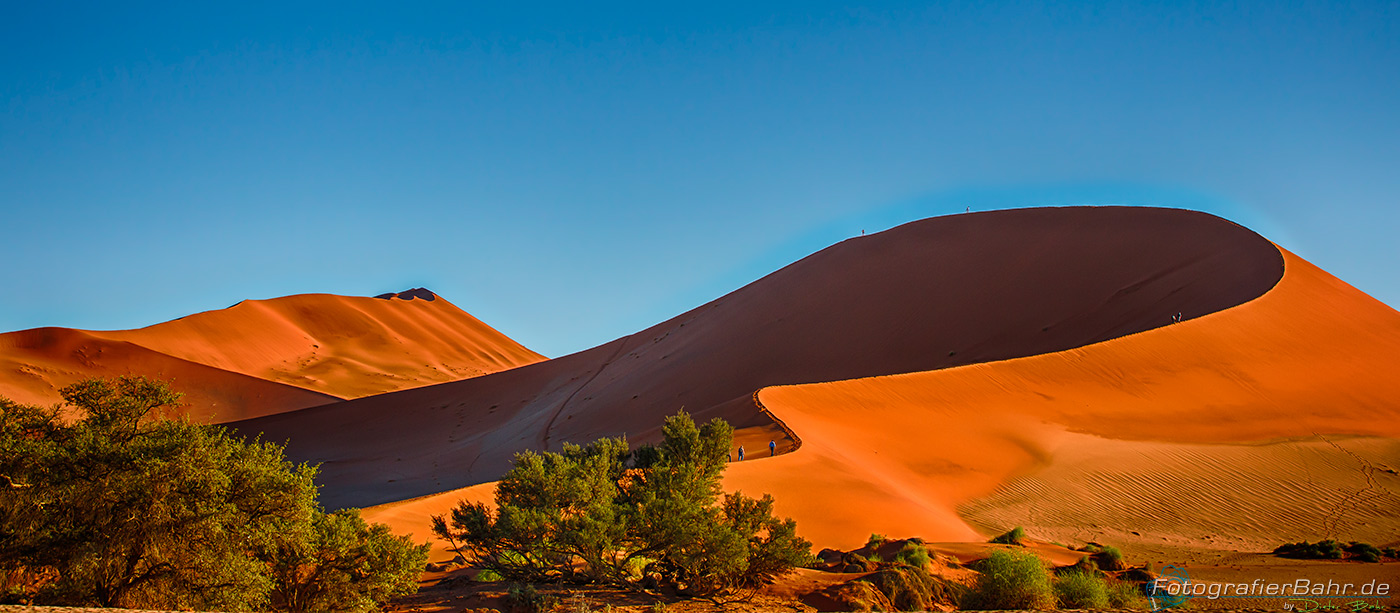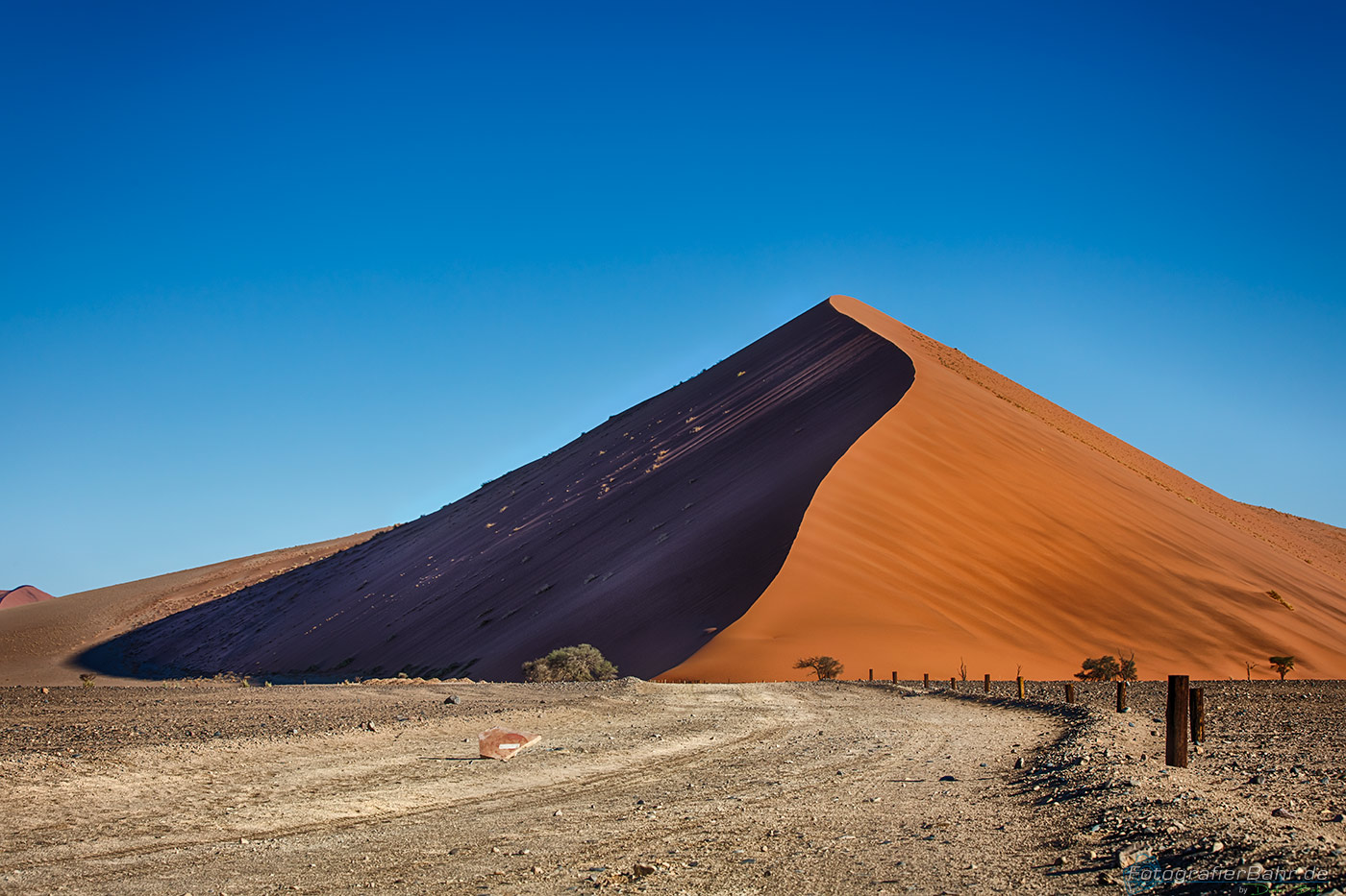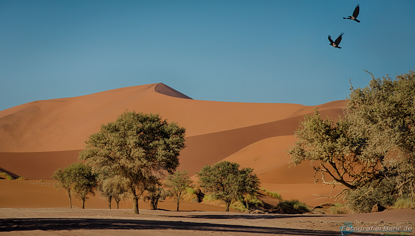 Vom Gate zu den ersten Dünen sind es ca. 45 km (Düne 45). Das Licht ist kurz nach Sonnenaufgang toll und der Sand noch kühl, für den Fall, das man auf eine Düne laufen möchte.