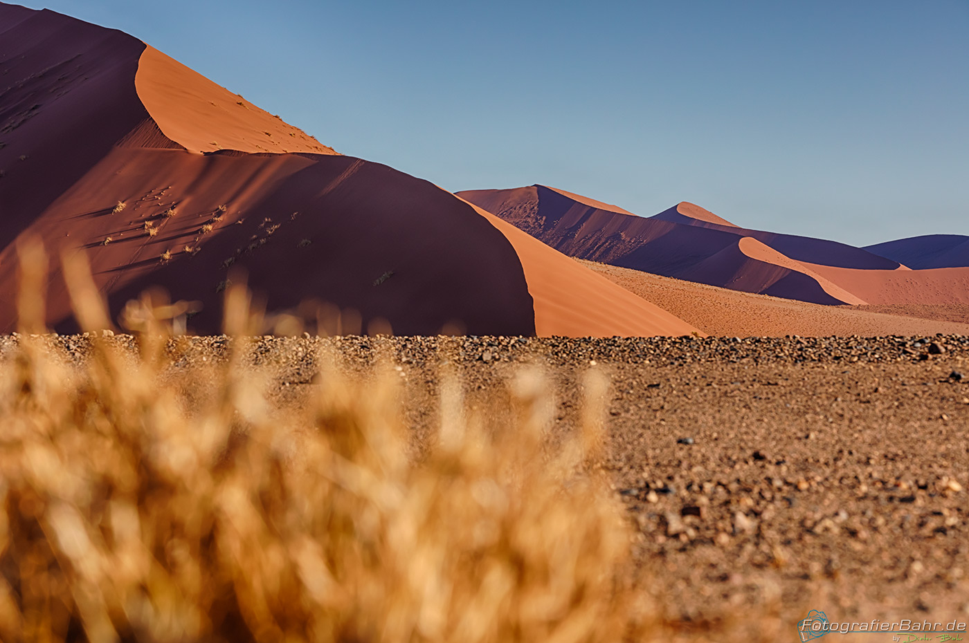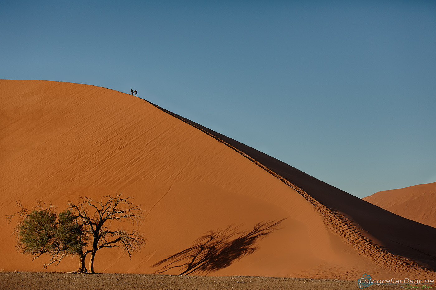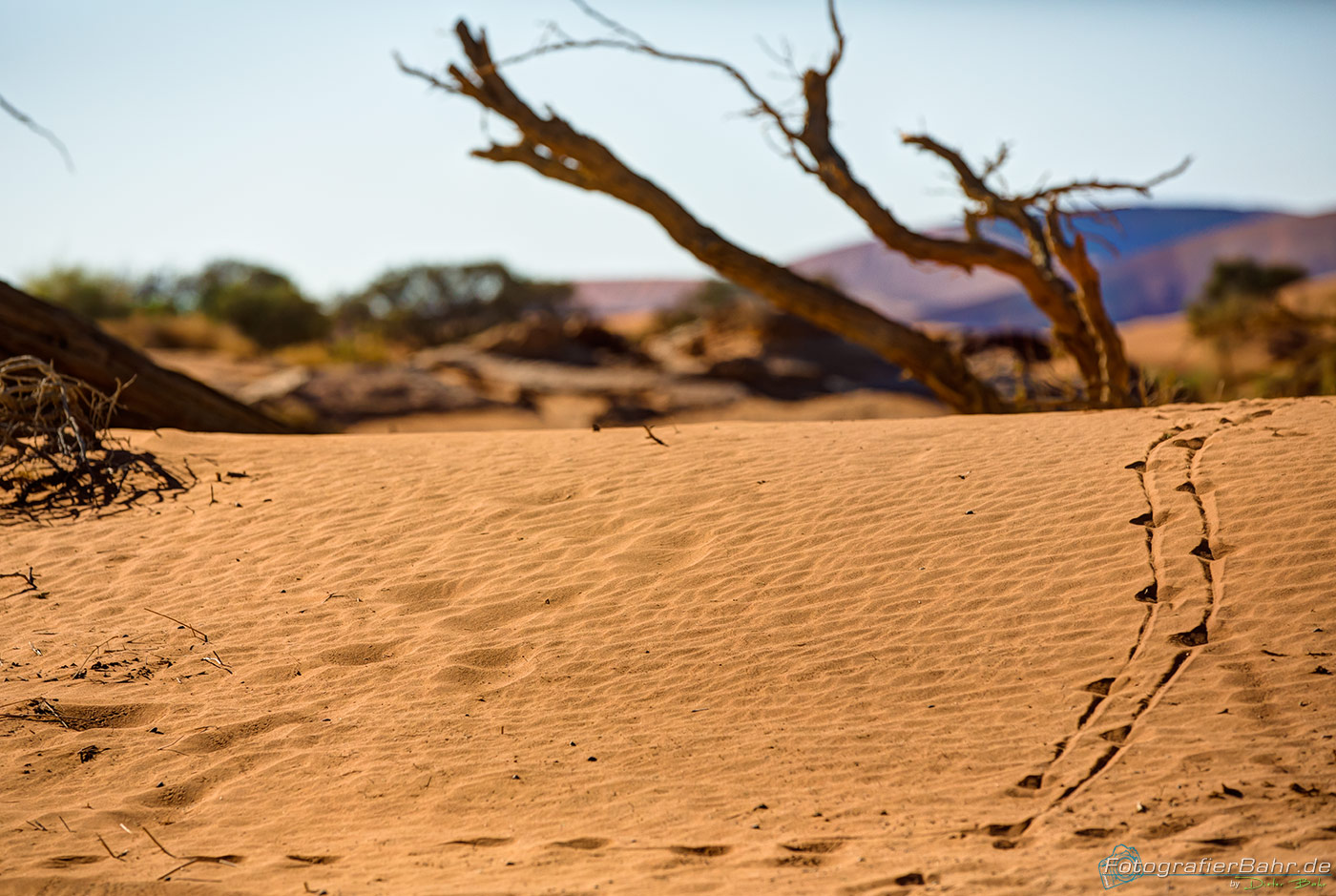 Vom Gate zu den ersten Dünen sind es ca. 45 km (Düne 45). Das Licht ist kurz nach Sonnenaufgang toll und der Sand noch kühl, für den Fall, das man auf eine Düne laufen möchte.