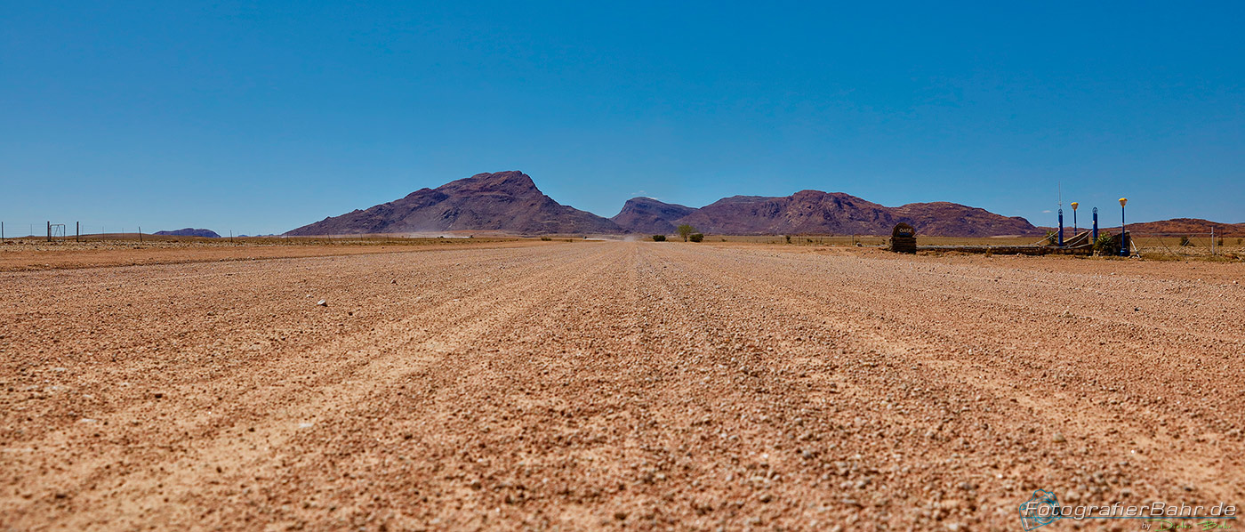 Auf dem Weg nach Sossusvlei kommt man an einer der wegigen Tankstellen vorbei.