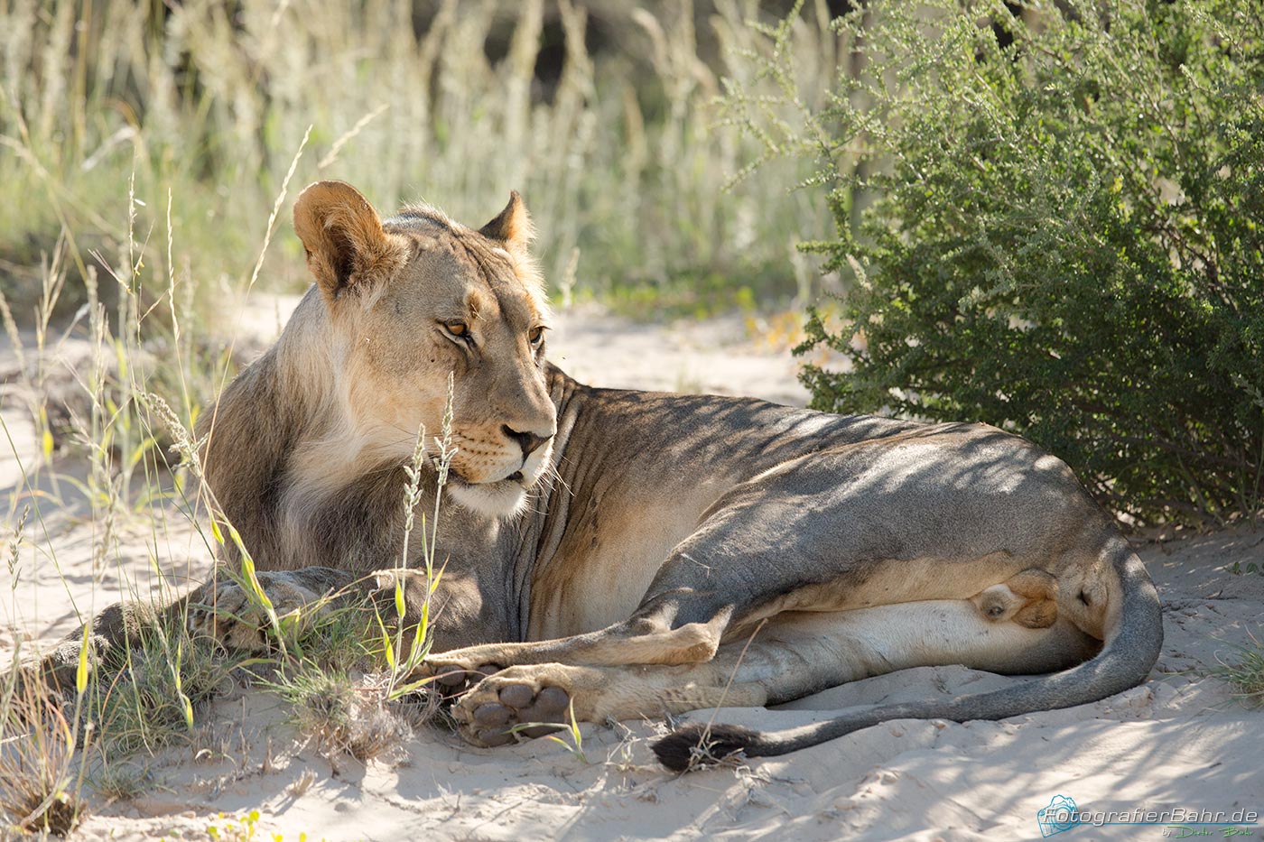 hin gefahren, wegen der roten Dünen und den Tieren die dort leben, mussten wir feststellen, das da keine roten Dünen zu sehn waren. Zumindest kaum. Es hatte dieses Jahr 60mm mehr geregnet (also ca. 260mm Gesamt :-) und somit war noch Gras auf den Dünen. Wenn man in den Kgalagadi Transfrontier Park möche ohne dort zu übernachten, kann man leider nur von 6 Uhr bis 16 Uhr dort hin, da der Grenzübergang "Mata Mata" nur dann offen ist. Der Park liegt in Südafrika und Botsuana. Ohne Reservierung wird es schwer im Park zu übernachten, selbst mit Zelt auf dem Auto. Weiterer Nachteil ist, das man, wenn man nicht im Park übernachtet, nicht alle Wege nutzen darf. Wussten wir nicht, aber egal. Wir hatten schon viele Tiere in Etoscha gesehn und "Glück" hatten wir auch.