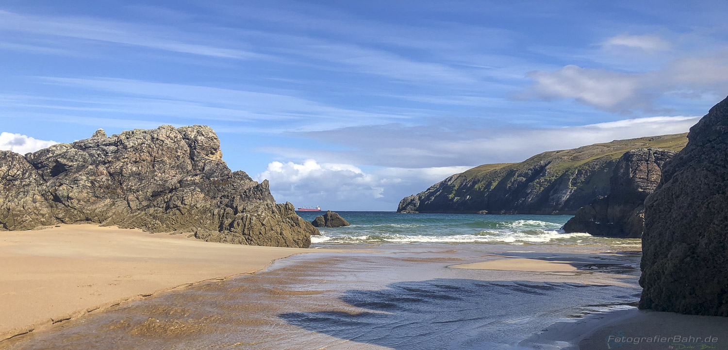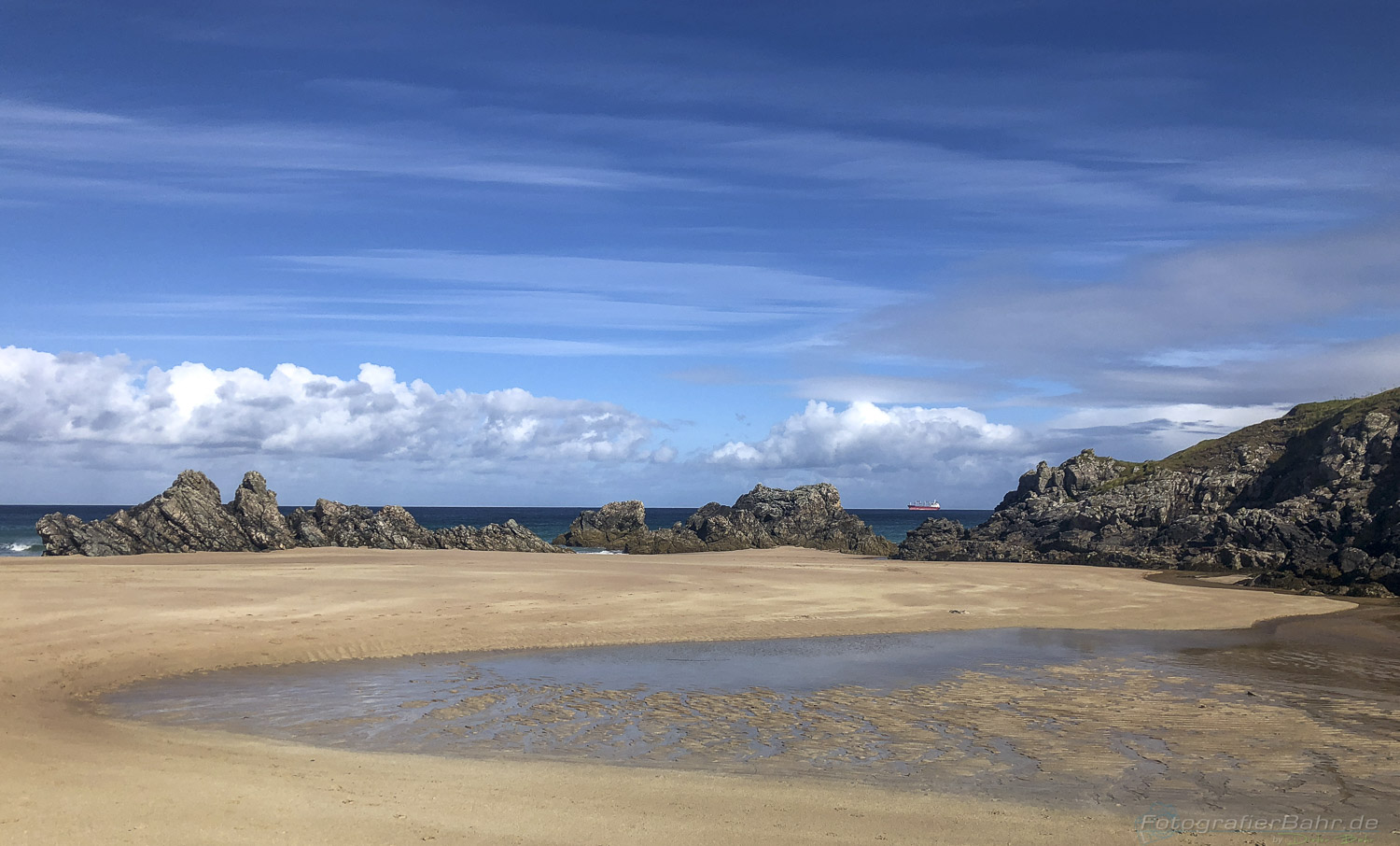 Ab Ullapool über Durness, wo es einen der schönsten Strände Schottlands gibt, nach Thurso. Unterwegs haben wir zwei motorradfahrende Engländer, Phil und Ian, kennen gelernt.
