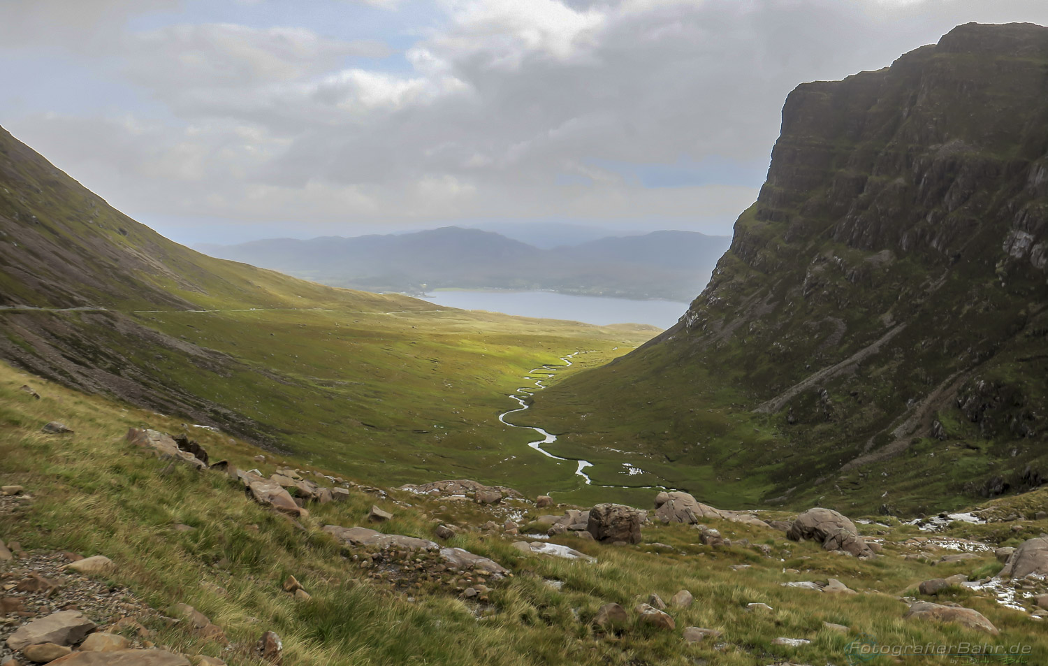 Nach dem Besuch von Eilean Donan Castle und einer Route über Applecross nach Ullapool. Die Landschaft wie meist überragend und das Wetter oft zum passenden Zeitpunkt trocken, wobei ich finde, dass trübes Wetter gut zur Landschaft passt.