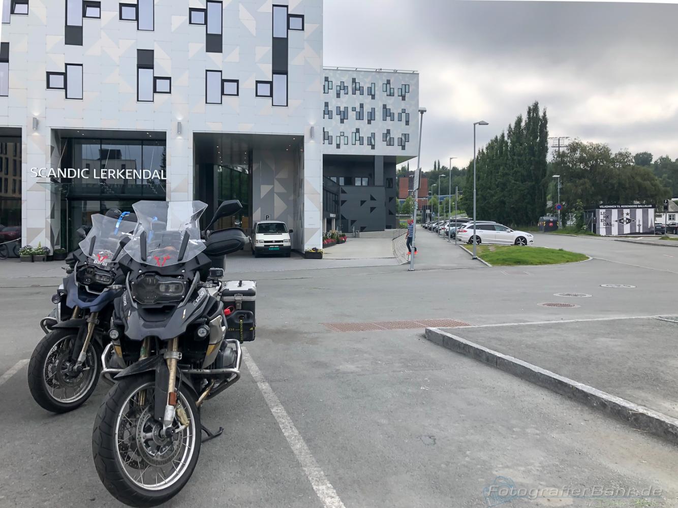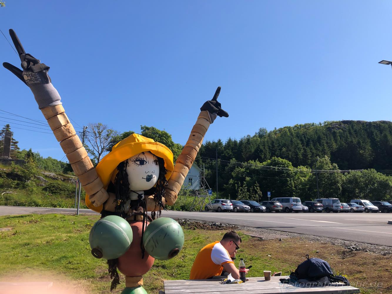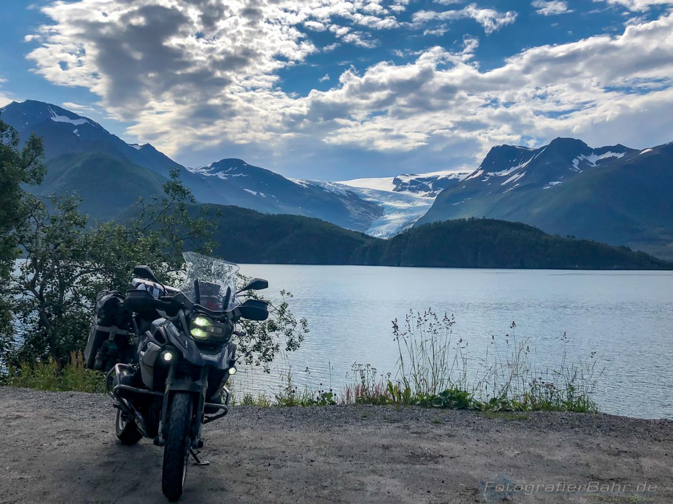 Mit dem Fährplan und einem Start um 5:30 hatten wir bezüglich der Fähren dann einen Lauf! Yes! Und so kamen wir eigentlich jeden Tag erheblich weiter als es die Routenplanung vorgesehen hatte. Klar, mit nem Moped ist das fahren auf den kleinen Strassen einfacher als mit nem Karton, so bezeichne ich die Wohnmobile. Die norwegischen Lastwagenfahrer hingegen nennen sie „die weiße Pest“, da die Wohnmobile oft viel weniger als die vorgeschribenen 80 auf Landstraßen fahren.