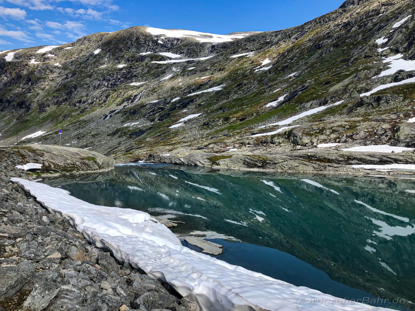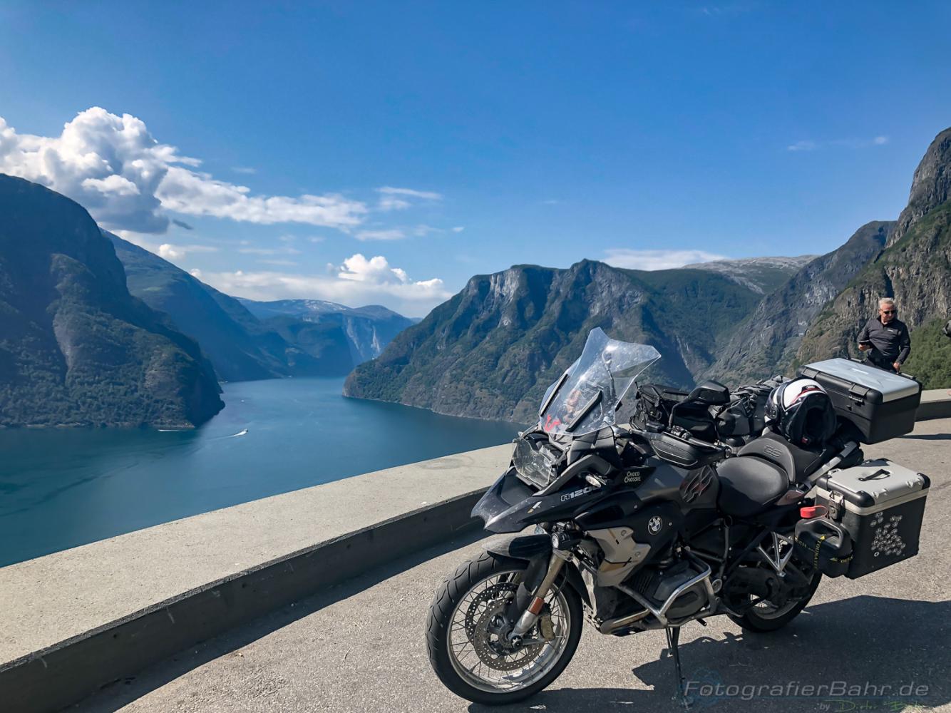 Unterwegs trafen wir dann ein Pärchen aus Leipzig, die uns von der 53 über einen Pass zum Aurlandfjord berichteten. Eine super Straße, die würde zwar 90 Kronen je Fahrzeug kosten, aber es lohne sich jede einzelne Krone. Ich würde dem Typ die 180 Kronen am liebsten aus dem Buckel prügeln. Eigentlich jeder Pass in Norwegen ist schöner als die Strecke, und das auch noch ohne Entgeld L. Wieder was gelernt. Einzig überragend ist der Blick der einen erwartet wenn man den Fjord sieht. Das kann man aber auch kostenlos genießen.