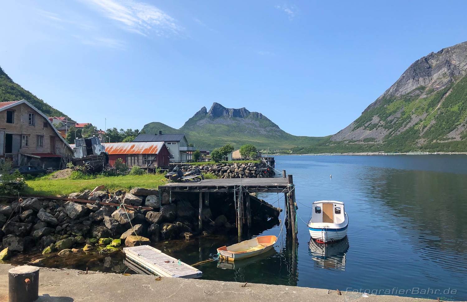 8. Tag auf der Halbinsel bei Brennsholmen stecken geblieben, da die weiterführende Fähre Richtung Lofoten um 17:00 fahren würde und wir die niemals erreichen würden. Egal, Unterkunft suchen und Feierabend.