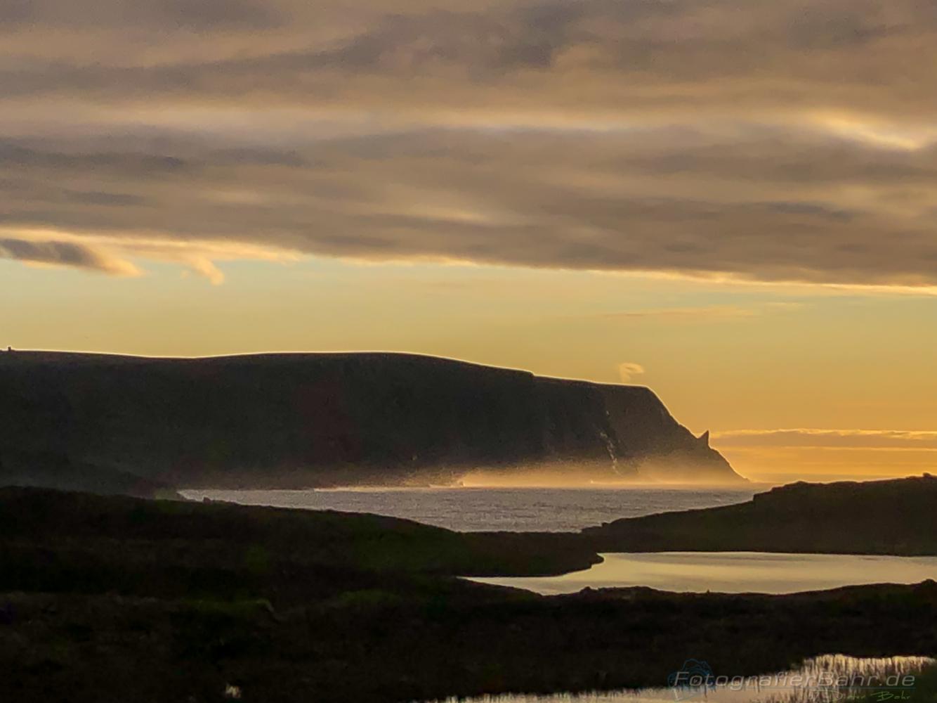 Im Zeitplan am 04.07. gegen 13:40 in der Unterkunft nähe Nordkap angekommen, ließen wir uns es nicht nehmen noch am Nachmittag hinauf zu fahren. Erwartet wurden wir von Nebel mit Sichtweiten um die 30 Meter. Nachts jedoch hatten wir Traumwetter mit blauem Himmel und Sonnenschein! Sonnenschein? Ja, denn im Sommer geht die Sonne oberhalb vom Polarkreis nicht unter :-)