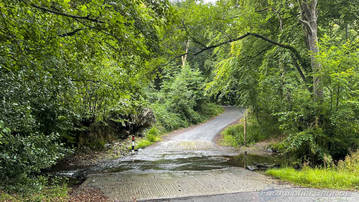 • Vielleicht einer der wichtigsten. Wenn es regnet und ihr habt winzigste Straßen in eurer Route geplant, PLANT UM, denn diese kleinen Single Track Roads sind oft mit viel dreck oder gar Moos oder Wiese in der Mitte bewachsen. Wäre ich nicht schon auf dieser Straße gewesen und auf der Suche nach einer größeren Straße, hätte ich mir diesen Sturz sparen können. Auch auf größeren Straßen bei Regen unbedingte Vorsicht, denn die Engländer haben Gullideckel komplett aus Metall. Ok, kennt man auch aus anderen Ländern, aber die sind gefühlt einen ½ bis ¾ Quadratmeter groß und bei Nässe extrem glatt.