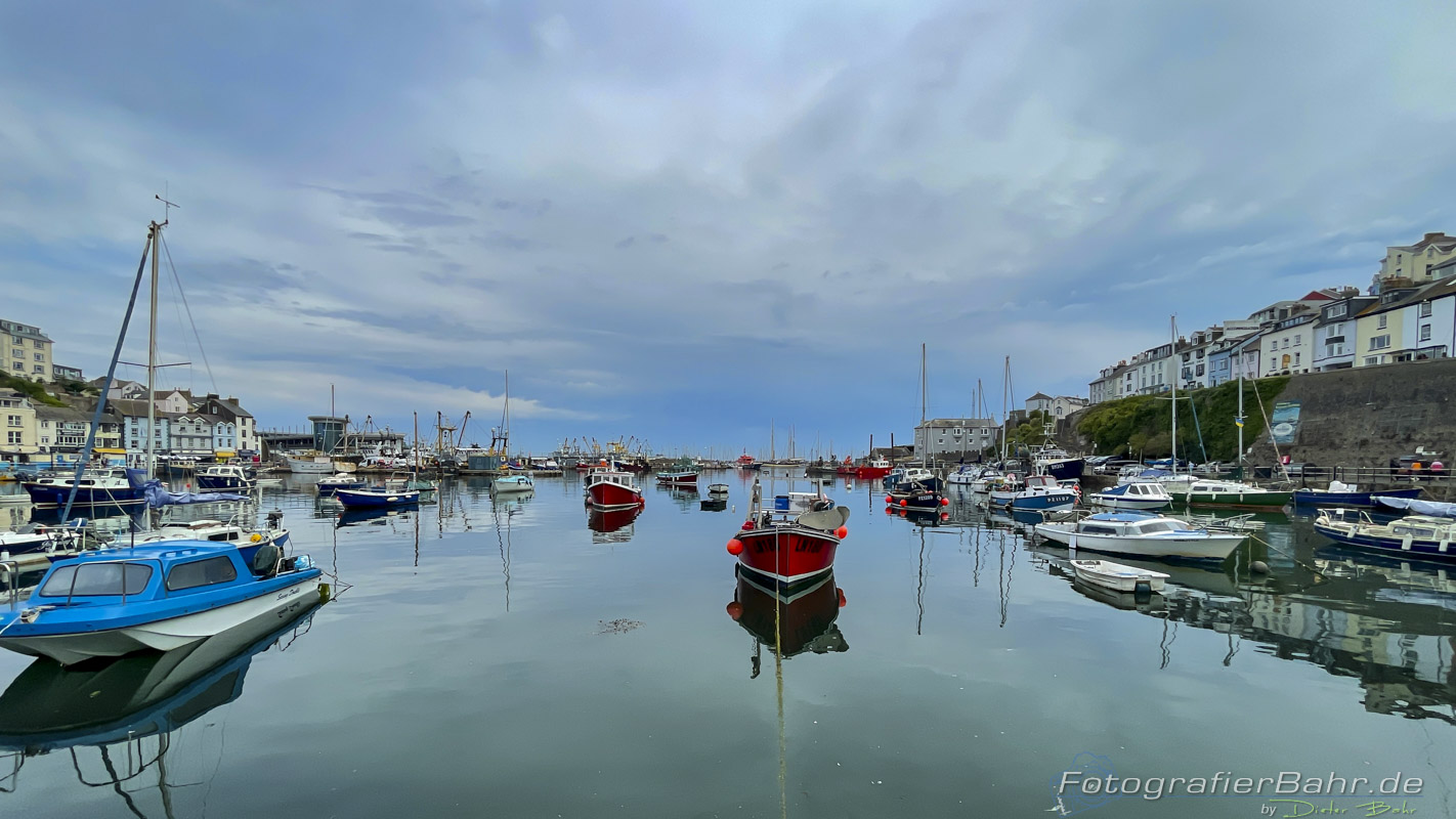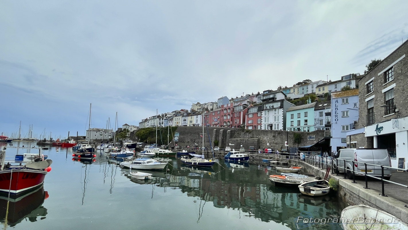 Golden HindTag 5: Start bei leichtem Nieselregen. Soweit es möglich war an der Küste entlang nach Brixham. Im Hafen des malerischen Städtchens liegt ein Nachbau der „Golden Hind“, das Schiff von Sir Franzis Drake.