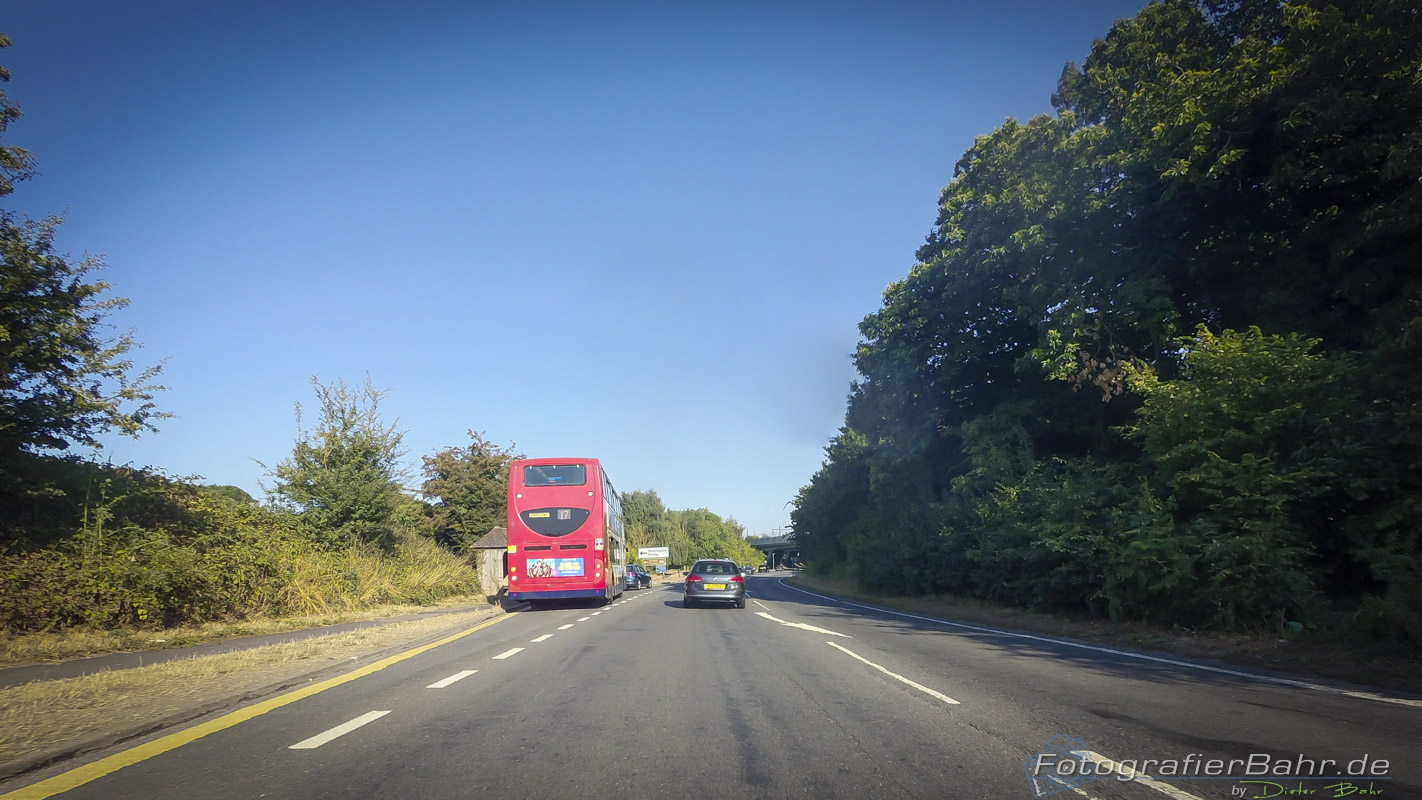 Wie fährt man in England? Wie in allen Ländern, in denen die Engländer mal waren auf der linken Seite, aber daran gewöhnt man sich schnell. Mit einem Linkslenker ist jedoch überholen auf Landstrassen eine kleine Herausforderung und man muss sich auf seinen Beifahrer verlassen können!